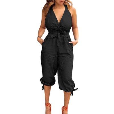 Women Summer Jumpsuits and Rompers Sexy V-neck Halter Bandage Playsuits Plus Size Loose Bodysuits